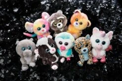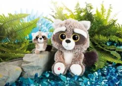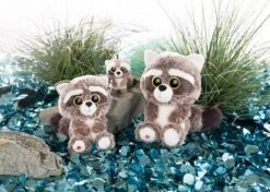 Leuchtend goldene Glitzeraugen und ein süßer Gesichtsausdruck mit cremefarbener Maske machen Clooneys Waschbär zu einem tollen Kuschelkumpel.