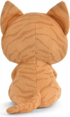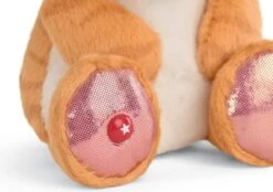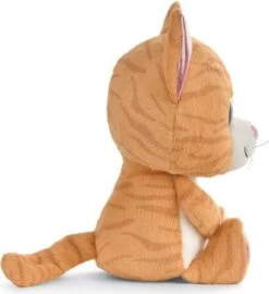 Rusty Tabby-Katze mit glitzernden Augen und rosa glänzenden Ohren und Pfoten. Für die GREEN-Serie von Nici werden fast ausschließlich Plüsch- und Füllmaterialien aus recycelten Materialien verwendet.