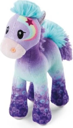Das niedliche Starjumper-Plüschpony sorgt für gute Laune. Ein stylischer lila Pony mit wilder Mähne und einem Nagel auf dem Auge wird definitiv Ihre Aufmerksamkeit auf sich ziehen. Das Pony gehört zur neuen NICI Green Kollektion, die fast ausschließlich auf Plüsch und Füllungen aus recycelten Materialien wie gebrauchten PET-Flaschen setzt.