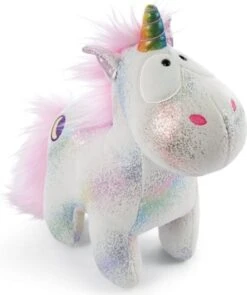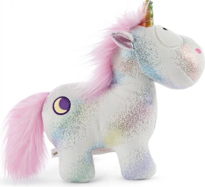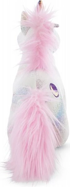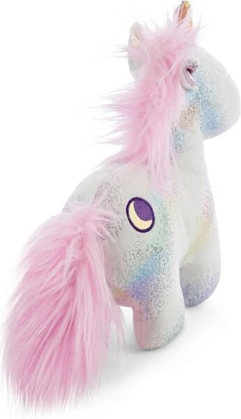 Möchten Sie ein wenig Magie? Der Unicorn Moon Keeper ist so weiß wie der Mond selbst und fasziniert mit seiner glitzernden Vorderecke in Regenbogenfarben und dem auffälligen Metallic-Foliendruck auf einem flauschig weichen Plüschkörper. Mähne und Schweif in Zartrosa, silbern glänzende Ohren, ein Gesichtsausdruck, der niedlicher nicht sein könnte, und eine detailreiche Mondstickerei an der Seite verleihen diesem einzigartigen Plüsch-Einhorn eine ganz besondere Note.