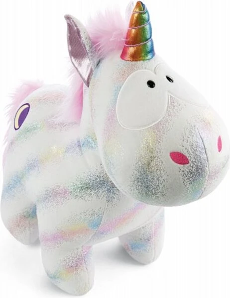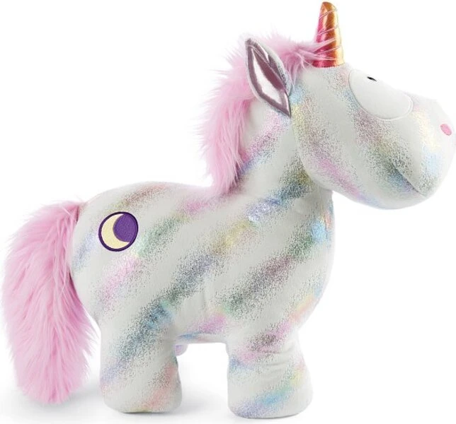 Möchten Sie ein wenig Magie? Der Unicorn Moon Keeper ist so weiß wie der Mond selbst und fasziniert mit seiner glitzernden Vorderecke in Regenbogenfarben und dem auffälligen Metallic-Foliendruck auf einem flauschig weichen Plüschkörper. Mähne und Schweif in Zartrosa, silbern glänzende Ohren, ein Gesichtsausdruck, der niedlicher nicht sein könnte, und eine detailreiche Mondstickerei an der Seite verleihen diesem einzigartigen Plüsch-Einhorn eine ganz besondere Note.