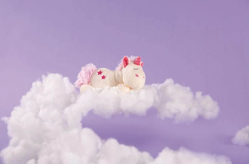 Ein süßes Einhorn schläft friedlich auf seiner Wolke. Für die GREEN-Serie von Nici werden fast ausschließlich Plüsch- und Füllmaterialien aus recycelten Materialien verwendet.