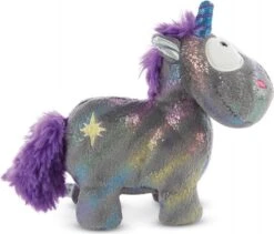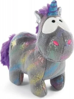 Grau wie die Tiefen der Galaxis kombiniert mit buntem Sternenstaub – das ist der Unicorn Starbringer. Das zauberhafte Fabelwesen fasziniert mit seinem glänzenden Regenbogenhorn und buntem Metallic-Foliendruck auf dem flauschig weichen Plüschkörper.