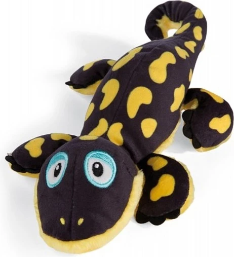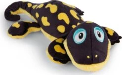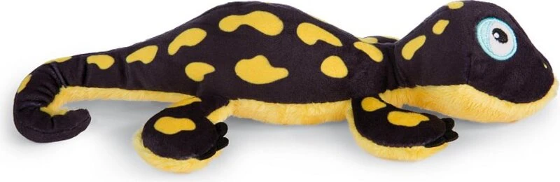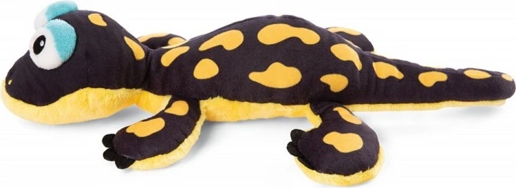 Fröhlicher Fleckensalamander Don Fuego mit gestickten Augen. Für die GREEN-Serie von Nici werden fast ausschließlich Plüsch- und Füllmaterialien aus recycelten Materialien verwendet.