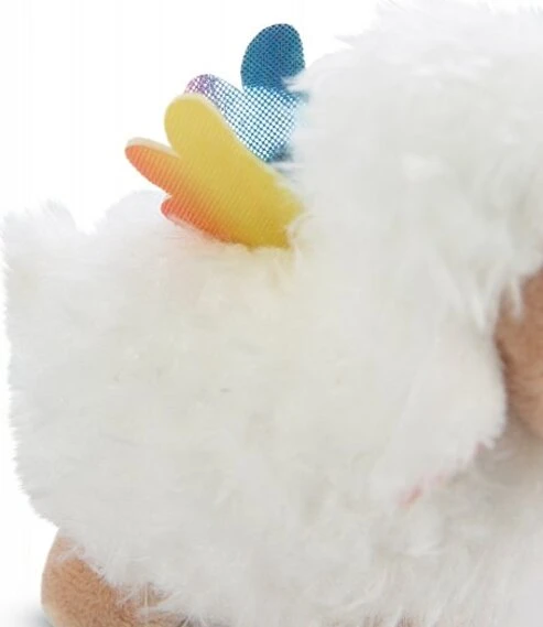 - Ihr süßer Gesichtsausdruck, kleine flauschige Flügelchen in Regenbogenfarben und lange Fellohren sind einfach schön zum Verlieben. Ein toller Schlaf- und Kuschelkumpel für jedes Kind.