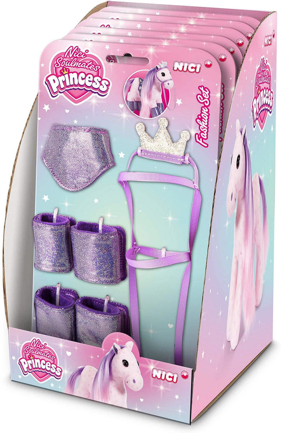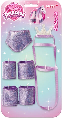 Kinder, die von dem tollen Spielpferd “Soulmates Princess 25 cm” der Marke NICI einfach begeistert sind, werden sich über dieses Zubehörset garantiert freuen! In dem Set sind ein Sattel, ein Zaumzeug mit Krönchen und vier Bandagen enthalten. So ist das Pferdchen bereit für lustige Ausritte!